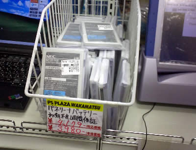 若松やソフマップで売っているNECカスタムテクニカのタブレット型PCパネリーナ用のHDDマウンターが若松に入荷するという話があったが「パネリーナのハードディスクマウンタの入荷はなくなった」そうだ。その代わり?かパネリーナ用バッテリーが4179円込みで売ってた。パネリーナについては淡々と更新しつづけるぞ雑記さんで。なおソフマップでは5/14の時点でパネリーナは完売しているようだ。