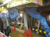 11月24日にJR総武線ガード下の秋葉原ラジオセンターで火災があり、火災翌日(11月25日)の様子をお伝えしたが、火災から5日目となる28日には、商品特価処分と並行して、復旧作業が始まっていた。左の写真は秋葉原ラジオセンターを通って秋葉原ラジオ会館に抜ける道の入り口。