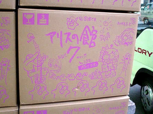 重さ1kgはあるというアリスの館7がソフマップ14号に15日に納品されたようで、全部で22コのダンボール箱が店頭の歩道に積まれていたが、アリスソフトらしいダンボール箱だった。