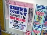 12月第3週に発売されるエロゲは21本が発売になるので、ソフマップのエロゲ取り扱い店/フロアでは先週につづいて、今週も開店時間を早めることが告知されている。でも、ソフマップ4号店/14号店は先週の日曜日の時点での告知では「17日(金)は9時半開店」と書いてあったような記憶もあって、さすがに大作エロゲ発売が重なっているので、10時開店よりも前に開店するのかとも思っていたけど、水曜日に見たら10時開店になっていた。ソフマップ本店では17日に、ひとがたルインの体験版+小冊子の配布も告知されていた。