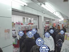 新刊が入荷し、「冬コミ新刊入荷しました。」のポスターもあったとらのあな秋葉原1号店のコミケ最終日の30日には、ラグナロクバトルオフライン、東方萃夢想、夢違科学世紀の16時からの販売もあったので、夕方5時ごろになると、とらのあな店1Fや店外はお客さんが激増した。