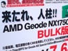 ユーザーズサイドにオモシロイコメントのPOPがあった。ATIチップのVGAカードに「残念ながらSLIには対応しません」や、玄箱の紹介も面白かった。今週発売になったSocket A向け省電力CPUGeode NX1750@14Wのバルク版では「最低限、電圧調整の効くMBを用意してください。MBとの個別動作確認しておりません」として「来たれ、人柱!」と謳われてもいた。
