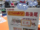 あととらのあなブースの商品を完売したために役目を終えた最後尾看板。