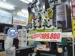 5月5日は端午の節句(こどもの日)なので、ツクモ本店3では、こどもの日の前から、店頭にあるGatewayの展示コーナーの牛に折り紙の兜を作ったものをかぶらせていた。PCショップでは季節感のある展示を見かける機会が少ない印象があるので、ツクモ本店3の展示はなんだかイイ感じ。
