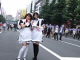 もえこtoなえこが6名で歩行者天国にやってきて開店案内のチラシを配っていた。「もえこtoなえこ」は「午後6時ごろまでは通常のメイド喫茶で、夜7時からはコスプレパブ」というお店のようで、いわば本職?ともいえるメイドさんらが一度に6名もやってきてチラシ配りをするのは、結構珍しい気がするし、インパクトもあった感じ。【追記】RinRin王国さん(7月9日分)の