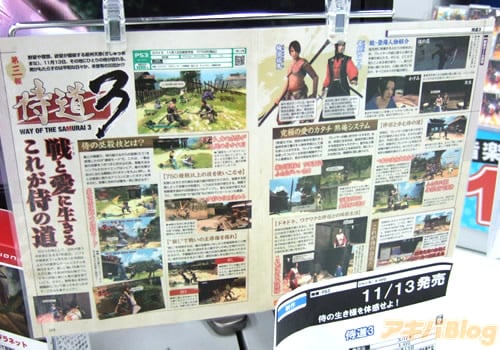 PS3用侍アクション・アドベンチャーゲーム侍道3【AA】が13日に発売になった。電撃オンラインによると『プレイヤーが自由に侍の生き様を体験できるアクションアドベンチャー『侍道』シリーズ最新作。プレイヤーの常時介入と従来作以上の多様なシナリオ変化を実現』とのこと。ソフマップ本館では『土下座やりたい放題の漢の道』とかだった。