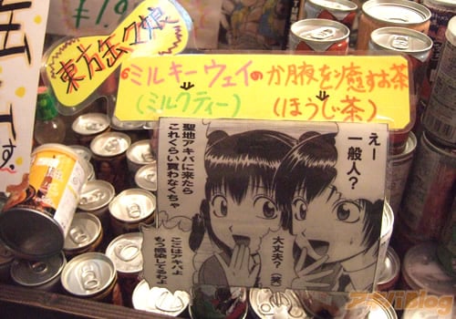 『東方缶々娘』は、BLUE LAMM AKIBA (ブルーラムアキバ)でも取り扱いしてたみたいで、入口のワゴンに並び、POPはキモーイガールズの『えー 一般人? 大丈夫(笑)』、『聖地アキバに来たら、これくらい買わなくちゃ。ここはアキバよ もう感染してるわよ』だった。