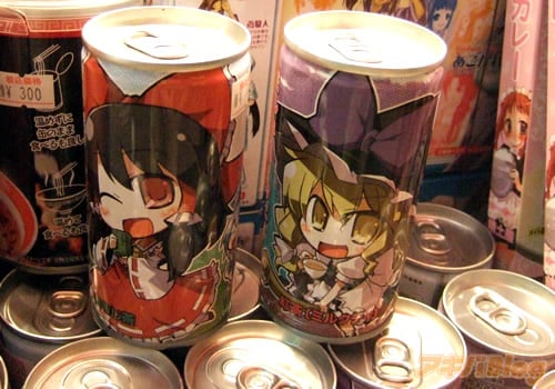 サークル東方缶々娘製作委員会のドリンク缶「霊夢」と「魔理沙」は、三月兎3号店(仮)では自販機でも販売している。BLUE LAMM AKIBA (ブルーラムアキバ)でも取り扱いしてたみたいで、POPはキモーイガールズの『えー 一般人? 大丈夫(笑)』、『聖地アキバに来たら、これくらい買わなくちゃ。ここはアキバよ もう感染してるわよ』とのこと。