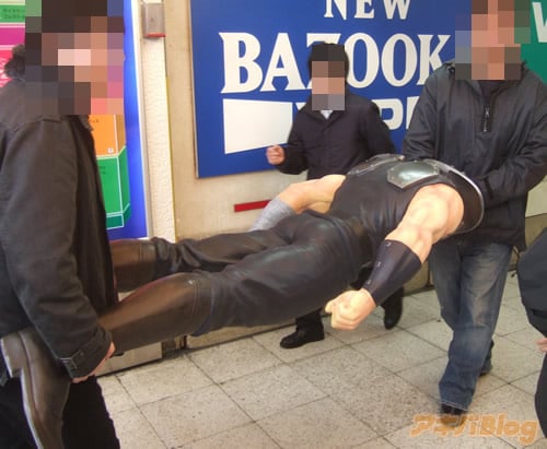 2人がかりで運ばれる1/1等身大ケンシロウ |