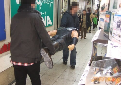 ラジオ会館で働くお店のスタッフや通行人は 2人がかりで運ばれるケンシロウは特に気にしてなかった感じ |