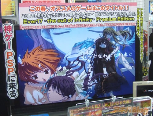 PSP用Ever17 -the out of infinity-【AA】が12日に発売になった。『Ever17』はもともと2002年にPS2・ドリキャス用として発売されたもので、ソフマップ本館のデモでは『この作品は「最後まで」頑張りましょう。最近本気で驚いたことありますか?』・『この作品を知らなかった頃に戻って再プレイしたい・・・』・『神ゲー、PSPに来る』などとしていた。