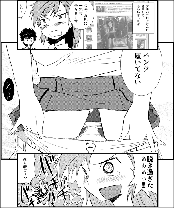 サークルコマイズムの新刊同人誌「電撃プレイ」が、15日にメッセサンオー3号店・メロンブックス秋葉原店に入荷していた。メロン通販の紹介文は『「とある魔術の禁書目録」ファンブック。御坂の4コマGAG本』で、「とある魔術の禁書目録」の当麻と美琴が、「放課後プレイ」みたいにイチャイチャ悶々してる一般向け四コマギャグ同人誌。