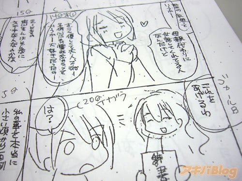 ネーム…? おーじ先生のネームはこんな感じです。ちょwwwどラフwwwハッ…これは漫画編集者としての想像力が試される瞬間か…。受けて立つ。 |