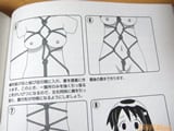ゲーマーズ本店5Fで、一迅社のSMハウツー本「身体も心もボクのもの~はじめてのSMガイド」【AA】を縛っていた。「SMってどんなもの」、「パートナーを見つけよう」、「ソフトSM」、「中級プレイ」、「縛ってみよう!」、「Mの楽しみ」、「ハードSM・その他プレイ」について書いたSMのやり方を解説した本で、その中の「菱縛り」を実際にやったみたい。