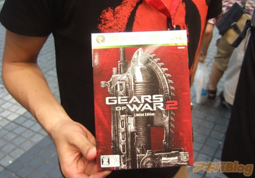 また、Gears Of War2(GoW2)日本版【AA】体験会には、『リミテッド エディション』に同根されるのハードカバー仕様アートブックの見本や、チェーンソー付き突撃銃「ランサーアサルトライフル」の模型もあり、KKS.JPさん7月19日更新分では『中央通りに生々しい血糊が付いた重火器が展示』を書かれている。