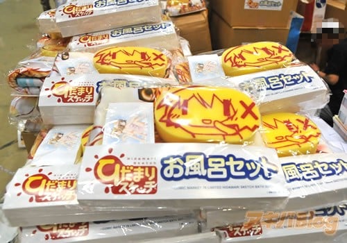 「ひだまりスケッチ×365」特別編の前編を2009年10月17日深夜0時30分から、後編を10月24日深夜0時30分からBS-TBSにて放送予定、更に、10月28日に同じく特別編のDVDの発売が予定されている、「ひだまりスケッチ」。その蒼樹うめ先生に描き下ろして頂いたお風呂セットでございます。