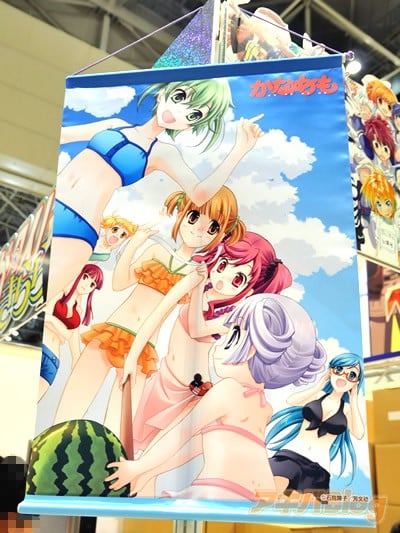そして、こちらもアニメ絶賛放送中「かなめも」。その石見翔子先生描き下ろしの、海で遊ぶかな達の美麗タペストリーでございます。