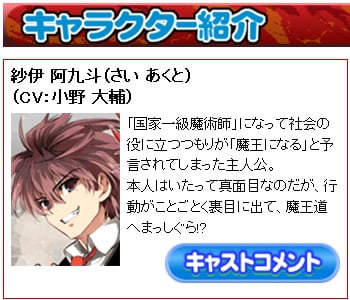 | 主人公・紗伊 阿九斗(CV:小野大輔さん) |