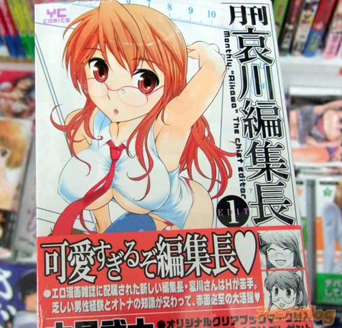 一般向けヌルヌルローション漫画3部作(ろーぷれ・ろーてく・ろーまじ)などで知られる大見武士氏の「月刊 哀川編集長」1巻【AA】を、アキバ某店などで早売りしてる。オビ謳い文句は『可愛すぎるぞ編集長♥ 工口漫画雑誌に配属された新しい編集長・哀川さんはHが苦手。乏しい男性経験とオトナの知識が交わって、赤面必死の大活躍♥』。