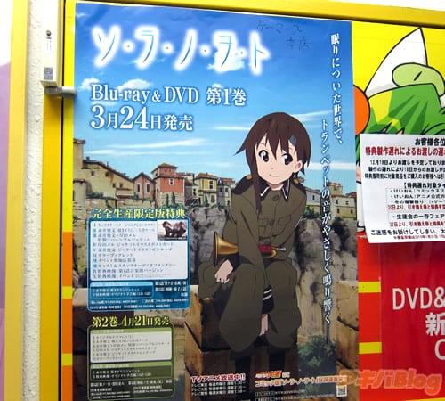 2010年冬アニメが始まり、「ソ・ラ・ノ・ヲ・ト」の看板がでたり、「聖痕のクェイサー」看板がついたり、「ダンスインザヴァンパイアバンド」看板があったり、とらA店頭が「バカテス」と「ダンス」になったり。 8日にゲーマーズ本店のフロアや階段まわりの『冬アニメのポスター』をみたら、冬アニメ21作品?うちポスターがあったのは4作品。【追加】