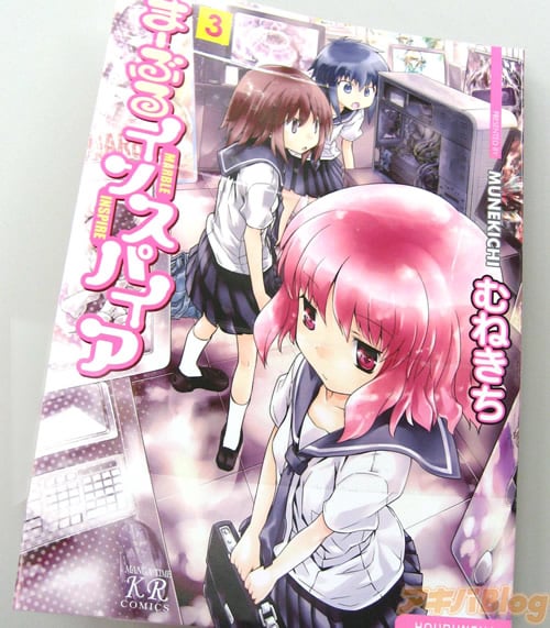2月27日発売の「まーぶるインスパイア」コミックス3巻 校正用カバー見本 ピンクが鮮やかな表紙でございます。 |