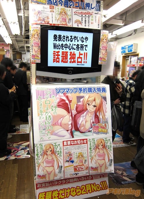 美少女ゲーム『オレの妹のエロさが有頂天でとどまる事を知らない』は、適当に作った宣伝画像が話題になりすぎてパッケージに採用された「妹」モノADVで、パッケージデザインもライトノベル風。発売日当日のソフマップPCゲームアニメ館は「オレの妹」エンドを用意し、『ZERO史上、ここまで工口い妹はいなかった!決して過言ではありません!』・『話題性だけなら2月No.1!』・『当店今月のゴリ押し!』とかだった。
