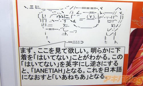 とら秋葉原店Aにいたキバヤシみたいな人いわく、『「はいてない」を英字にし逆さにすると「IANETIAH」。これを日本語になおすと「いあねちあ」となる。つぎに、麗華がツインテールであることに注目してもらいたい。「かわいい」。そして、ベッドに寝そべり、抱き枕をぎゅっと抱え、少し頬を赤らめて、こちらを見上げている、というシチュエーションは、あらゆる者に「興奮」を与える。最後に、このテレカは「とらのあなで購入したものにしか与えられない」、ということを忘れてはいけない。これら全てを合わせると、「いあねちあかわいい興奮とらのあなで購入したものにしか与えられない」。最初の「いあねちあかわいい興奮」は意味が分からないのでノイズとして削除する。つまり、このテレカはとらのあなで買うことでしか手に入らないんだよ!』とのこと。