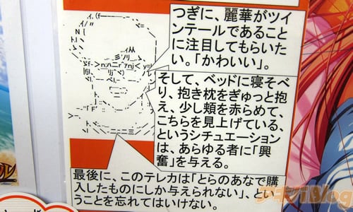 とらのあな秋葉原店Aで、4月22日発売予定の美少女ゲーム「暁の護衛~罪深き終末論~」【AA】のとらのあな特典テレカに秘められた謎を、「TTR とらのあな特典テレカ調査班」のキバヤシみたいな人が解明していた。とら特典テレカの絵柄はヒロイン二階堂麗華。「はいてない」「ツインテール」「シチュエーション」とかが謎を解く鍵みたい。