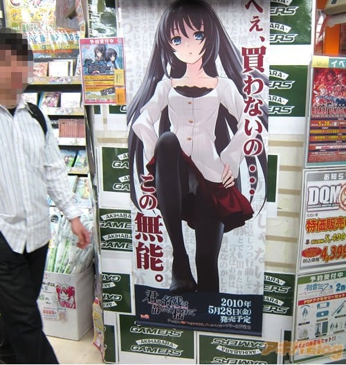 ユニゾンシフトブロッサムから5月28日発売予定の美少女ゲーム「君の名残は静かに揺れて」【AA】で、ゲーマーズ本店ヒロイン茉百合様の等身大タペストリーが付いてた。茉百合様には「ドMには堪らない裏の顔」があるみたいで、ゲーマーズ本店にあったのは茉百合様の黒ストに踏まれる『へぇ、買わないの… この無能』タペストリー。