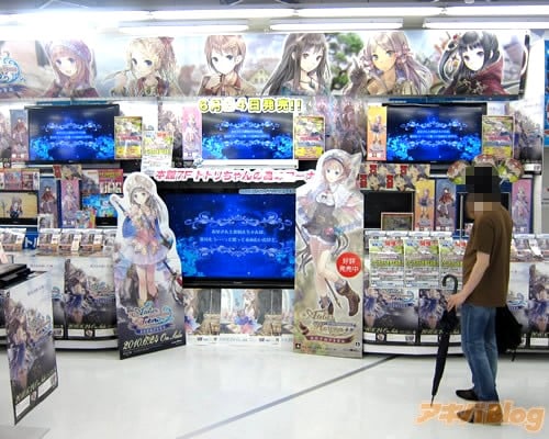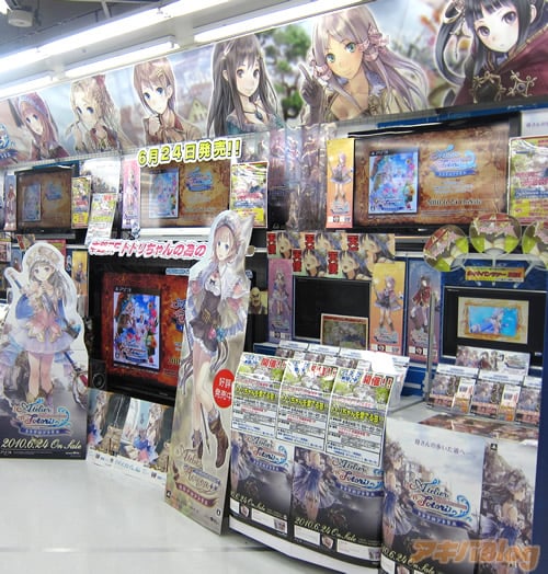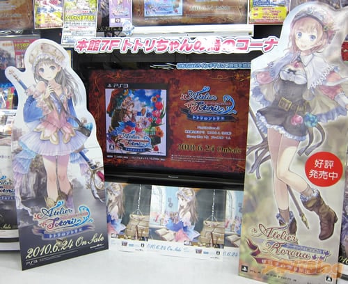 この『トトリちゃんの為のコーナー』は、予約コーナーにあった『トトリのアトリエ』のPOPや、トトリのぺったんこな胸元をじっくり心ゆくまで堪能できる特大タペストリー、トトリ等身大パネルなどを集め、65インチ大型モニタをはじめとする大小モニター7台を使って「トトリのアトリエ」のPVを流してた。この展開はFF13なみの扱い。