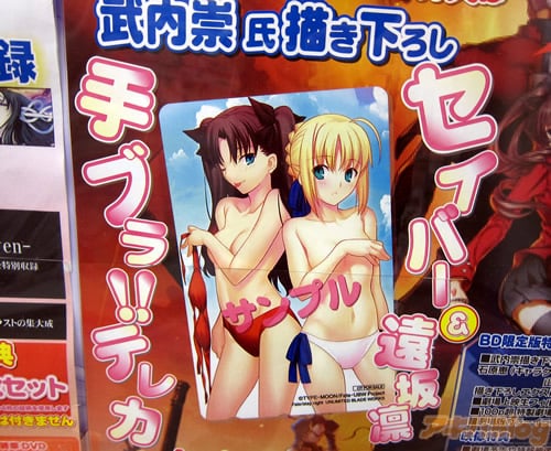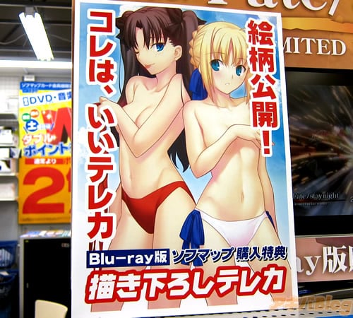 9月30日発売の 劇場版「Fate/stay night」BD【AA】で、秋葉原のソフマップ(本館・AM館・PCゲームアニメ館)でソフマップ初回限定特典の手ブラテレカのイラスト告知POPが出ていた。ソフマップのBD版特典テレカは凛とセイバーの手ブライラストで、Twitterにポストした反応には「これね!やばいよ!!」「けしからんなw」などなど。