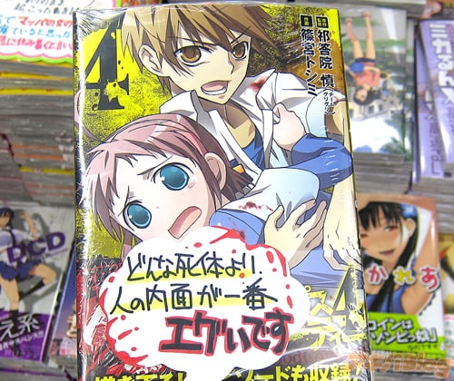 同人ゲーム「コープスパーティー」をコミカライズした、篠宮トシミ氏によるホラーコミックス「コープスパーティー BloodCovered」4巻【AA】が出ていて、メロン秋葉原店でPOPが付いてた。コミックス情報では『狂気に溺れた時、人は「人」であることを保てるのか…』などを謳い、メロン秋葉原店のPOPは『どんな死体より、人の内面が一番エグいです』。
