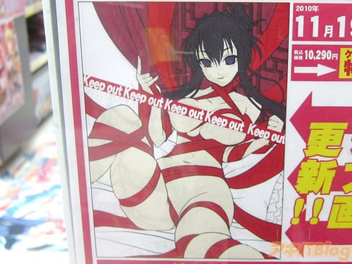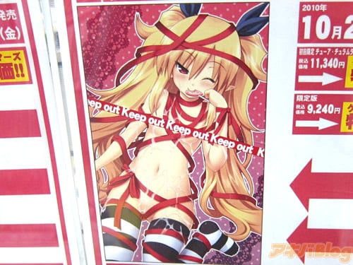 なお、Wikipediaによると、「裸リボン」は「裸エプロン」と同じ?ように『フェティシズム的服装倒錯症に包括される嗜好』だそうで、ゲーマーズ本店は2007年の裸リボンの時にはすでに『裸リボンキタァァァァァ!好きだあああっああ!…ハァハァ』で、2010年4月には階段まわりに裸リボンテレカ絵を拡大したポスターを貼ってたことや、お店入口に裸リボンを出してたこともあった。