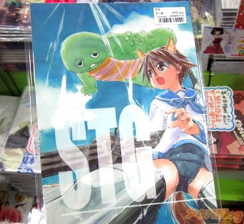 ストライクウィッチーズ同人誌『STG』は、南国生まれの恐竜の男の子「ガチャピン」がストライクウィッチーズの世界で戦いを繰り広げるクロスオーバー作品みたいで、サークルさんは冬コミ前に『機械化航空歩兵vs.Gのバトル漫画になります!』と告知されていたもの。