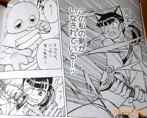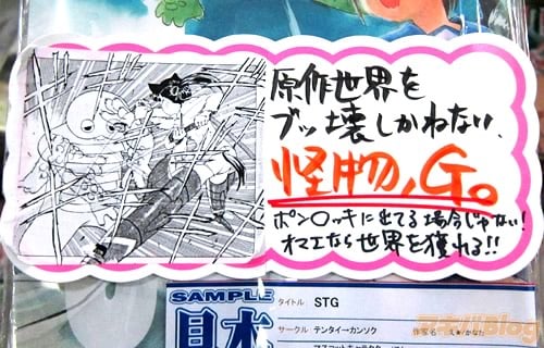 サークルテンタイ→カンソクのストライクウィッチーズ同人誌『STG』に、メロンブックス秋葉原店でPOPが付いてる。ガチャピンがストライクウィッチーズの世界に登場するお話で、群咲さんは『やっぱりGの戦闘力がハンパねえ。もっさんの剣を素手でいなすわ、烈風斬も効かないわのトンでも性能。このハイスペックぶり、これぞいつものGさんですわ』。