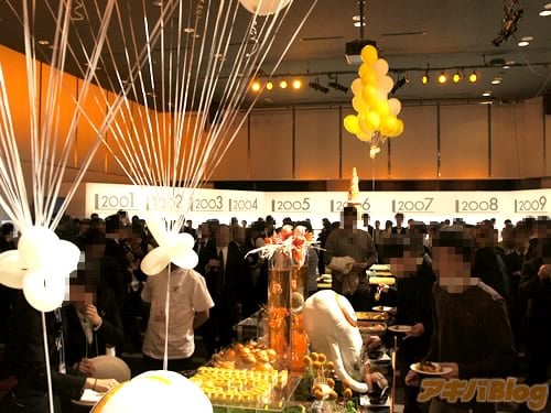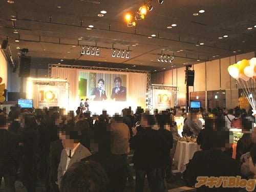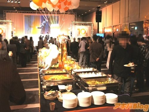 フィギュアメーカー・グッドスマイルカンパニーの創立10周年感謝祭が、ベルサール秋葉原で1日に開催された。関係者(取引先やライセンス元など?)を招いての回と、一般から抽選で300人を招待した回があった。関係者向けの回には、安藝貴範氏の挨拶や、JAM Projectのライブとかがあり、食べ物タクサンなこんな感じだった。