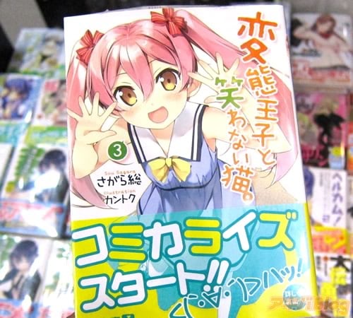 ライトノベル『変態王子と笑わない猫』は、とらのあな通販の紹介によると『ひょんなことで“笑わない猫像”に祈ったら、心で思ったことがいつでもどこでも垂れ流しになってしまった!?』な、頭の中身が煩悩まみれな高校生・横寺陽人が主人公で、「爽やか系変態ラブコメ」を謳った1巻はMF文庫Jレーベルの初動最高売上だったみたいで、2巻発売時には「1巻バカ売れで大注目の作品」POPもついてたた。