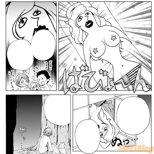 カントク:キャラクターの影のギミックは昔から使われていた定番な技法ではありますので、特に目新しい事はやっていないんです。ただ唯一失敗したと思ったのは、一巻は髪の毛が広がっていなくて足が閉じていたからできたんですけど、二巻以降は髪の毛が広がって足も開いちゃって、もう動物ネタはできないなぁと(笑)
