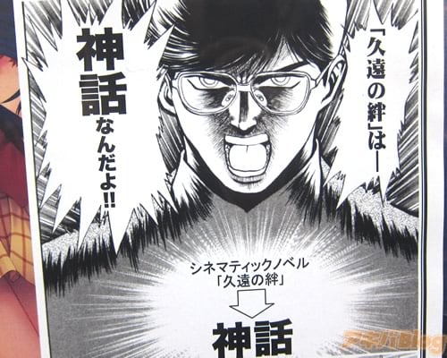 メディオ!秋葉原にあったMMR(メディオ!ミステリー調査班)POPによると『久遠の絆』は『二十世紀最高クラスの感動作。フェイトは「文学」、AIRは「芸術」、クラナドは「人生」と言われるようにフォグが世に送り出した伝記シネマティックノベル…「久遠の絆」は神話なんだよ!』、『し‥神話だってーっ!』、『12年前に俺達が味わった「神話」への感動を今の若者たちにも体験して欲しい―俺は心からそう思っている…』とのこと。