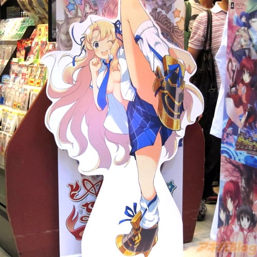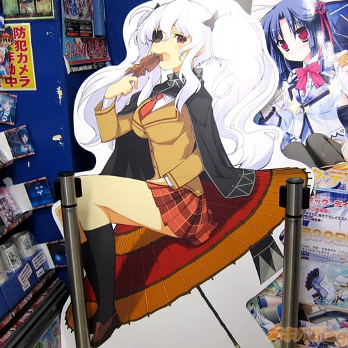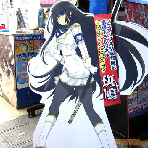 3DS用爆乳ハイパーバトルゲーム「閃乱カグラ 少女達の真影」【AA】の描きおろしキャラクター立て看板が、3日に5店舗に設置された。各店舗に1人ずつ設置みたいで、ゲーマーズ本店「飛鳥」、ソフマップAM館「斑鳩」、メッセサンオー「葛城」、アニメイト秋葉原「柳生」、とら秋葉原店A「雲雀」。中央通りを運ばれていく「飛鳥」「斑鳩」も見かけた。