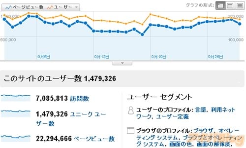 ユニークユーザー数:147万9326人(Google Analytics 9/1~9/30)