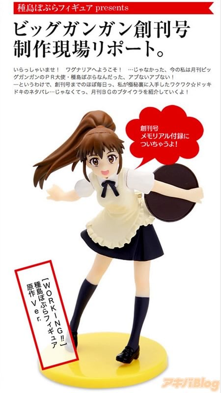 そしてそして、なんと創刊号にはメモリアル付録として「WORKING!!」のマスコット、種島ぽぷらの特製フィギュア(原作Ver.)がついちゃうんです。今回、アキバBlogをご覧の方に特別にその全貌を公開しちゃいます。