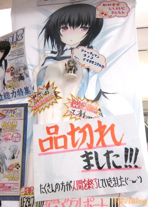 雑誌付録誌上世界初!おっぱいを立体化!な『松永燕 もみもみ立体抱きマクラカバー』が付録になった『電撃G's Festival! Vol.24』が完売し、とら秋葉原店Aでは「おっぱいが揉める抱き枕カバーを手に入れて、人間終了だ\(^o^)/」とオススメしていたからか、『たくさんの方が人間を終了していきました(´・ω・`)』POPがついてた。