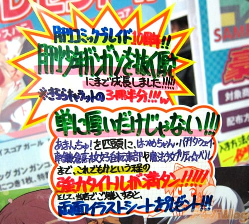 「月刊少年ガンガンを抜く厚さにまで成長しました!!!」 「単に厚いだけじゃない!!!これでもかという程の強力タイトルが満タン!!!」 |