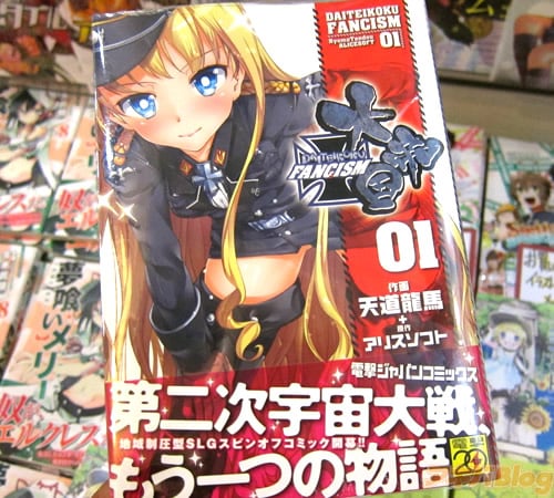アリスソフトの地域制圧型SLG「大帝国」のスピンオフコミックス「大帝国FANCISM」1巻【AA】が出ていて、とら秋葉原店AでPOPが付いてた。コミックス情報では『ドクツ第三帝国シナリオをコミカライズ!』などを謳い、とら秋葉原店AのPOPは『絶頂シーンだけ集めてみました。イキ顔が大好きな方は大発狂間違いなし!!これはセウトww』。