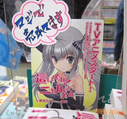 4月からTVアニメも始まった「這いよれ!ニャル子さん」の原作ライトノベルに、K-Books秋葉原新館で『マジで売れてます!』POPが付いてた。アニメ開始直前には、GA文庫の中の人のツイッターで1巻の売れ行きが急増もあったみたい。また、K-Books秋葉原新館には「(」・ω・)」うー!(/・ω・)/にゃー!」POPもたくさん。