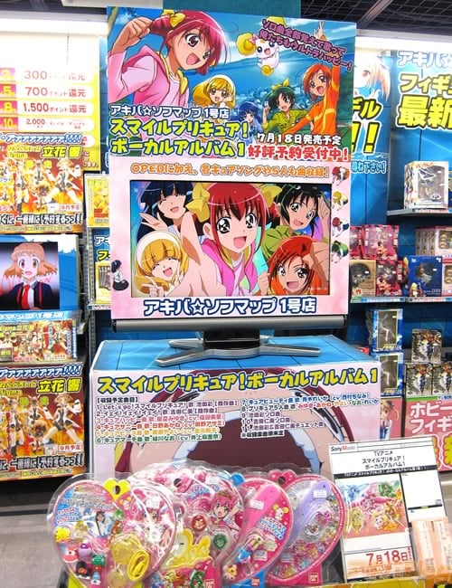 アキバ☆ソフマップ1号店の4階ホビーフロアに、7月18日発売予定の「スマイルプリキュア!ボーカルアルバム1」【AA】予約コーナーができていて、OPやED、変身シーンをループで流してた。