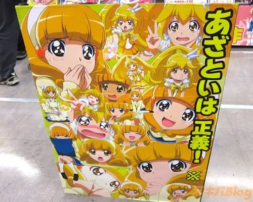 アキバ☆ソフマップ1号店の4階ホビーフロアに「スマイルプリキュア!ボーカルアルバム1」【AA】予約コーナーが出来ていて、OPやED、変身シーンをループで流してた。キュアピースの「あざといは正義」、掛け軸に「道」のプリキュア道、「みゆき魚眼顔」などがあり、尼マイクさん『ネタ満載でツッコミきれないww』とのこと。