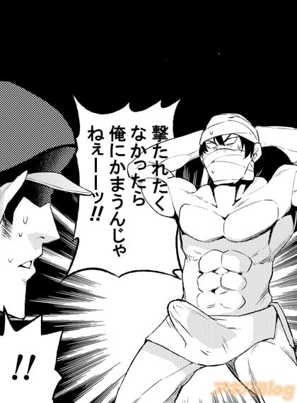 チ○コをピストルに見立てた捨て身の脅迫。ピストルと誤解させる事ができなくとも"撃つ"意味を別にとってもらえれば、しめたもの。しかし、そっちの趣味の人には「ユーやっちゃいなよ」と、逆に喜ばれてしまう危険な行為なので、注意が必要だ。