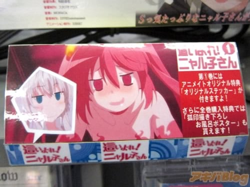なお、アニメイト秋葉原の店内では、ニャル子さんBD/CDの予約展開をしていて、ニャル子さん特設コーナーではデモを流してた、お望みならばご予約も可能ですが…SAN値が下がりますよ?』『予約しないで買えると思っちゃいけませんぜ?』などがあったほか、「予約しないと"指先一つでダウン"されるぞ!」 、アニメイトで予約しない…?「お前らの血は何色だー!!」 、「ウザイ! 可愛い! あざとい! それがニャル子さんの魅力!!」とかもあった。